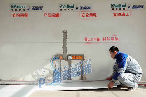 第四步:鋪設(shè)地暖管。我們用的是德國進(jìn)口的威能PE-RT阻氧型地暖管。PE-RT三層阻氧型地暖管可以有效防止氧氣滲漏;屬于環(huán)保型管材,可回收;無毒、無味、無污染;耐酸、耐堿,抗蠕變,抗老化,具有優(yōu)異的長期靜液壓和抗沖性能。它的柔韌性是極好的,可以焊接;并且它的隔熱性能好,節(jié)能保溫,無滲漏隱患。