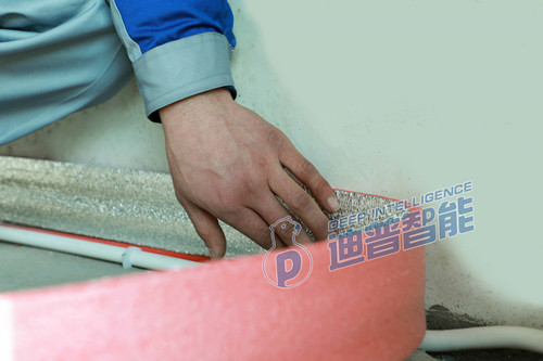 第一步:鋪設(shè)邊界保溫條。我們公司定制的邊界保溫條以EPE珍珠棉主要材料,顏色為粉紅色。鋪設(shè)邊界保溫條主要是為了減少地暖熱量的流失。它不僅可以減慢由地面受熱而導(dǎo)致的水泥蓄熱層膨脹,防止墻面水泥層卷起;而且能夠阻擋水泥沿著邊縫往下流淌,以免出現(xiàn)材料浪費(fèi)或后期出現(xiàn)地面咯吱聲。所以,鋪設(shè)邊角保溫條是非常有用的。