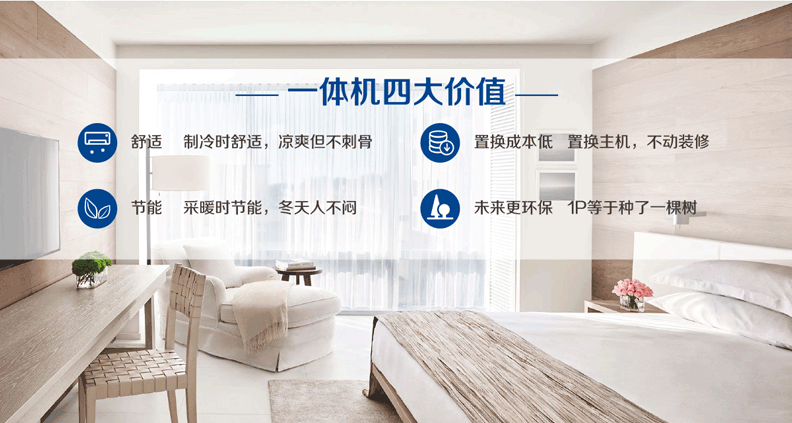 全集成(安裝簡單 維護時方便 使用時省心):水力組件高度集成,室內風機內置二通閥,提升泵(可選)