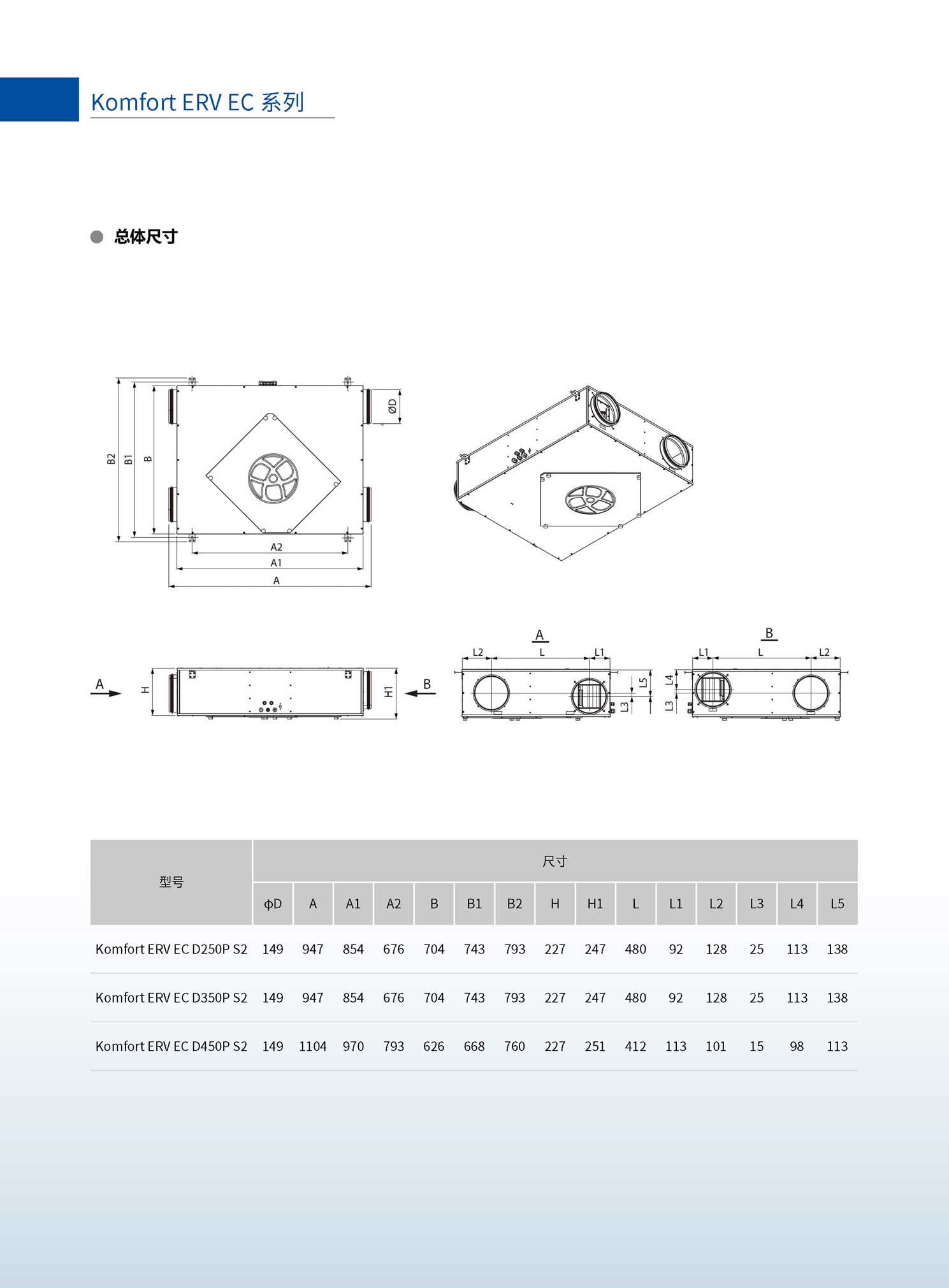 ● 高靜壓,靜壓高達430pa,保證末端新風量